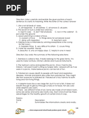 Formative Test English 6 Quarter 4 Plants Vocabulary